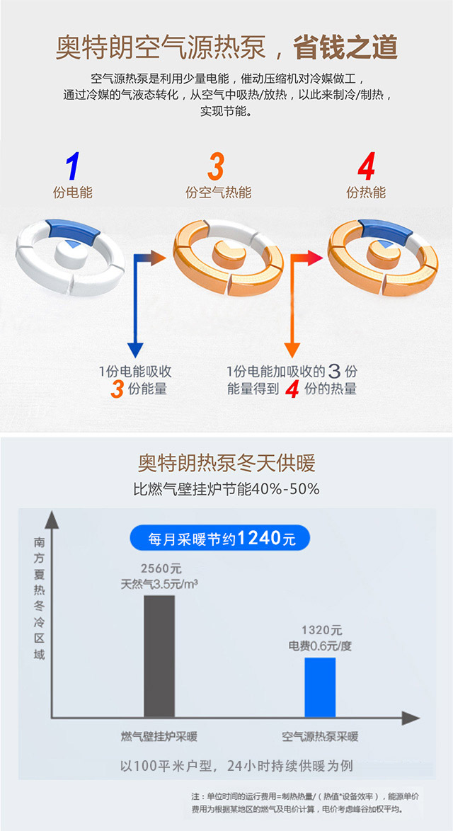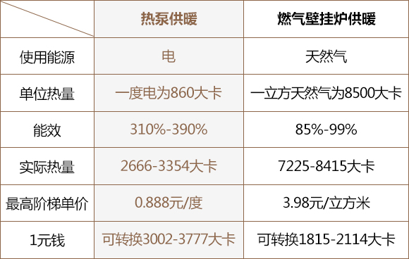 综合比较,“热泵供暖”比“壁挂炉供暖”使用费用可节省30%-50%
