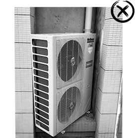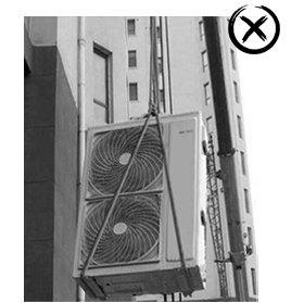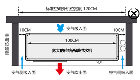 在标准空调外机位内两侧空间小,出现故障没有维修空间,只能动用吊车费用高达1000-2000元
