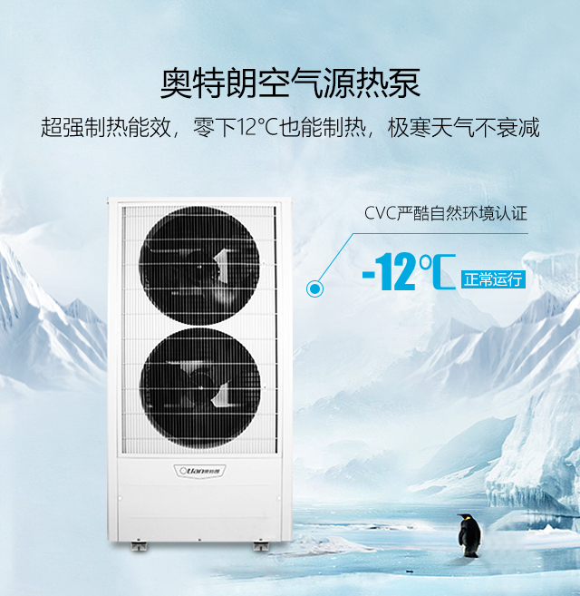 奥特朗热泵是根据低温热泵的国家标准GB/T25127.2检测名义制热工况的环境温度是-12℃